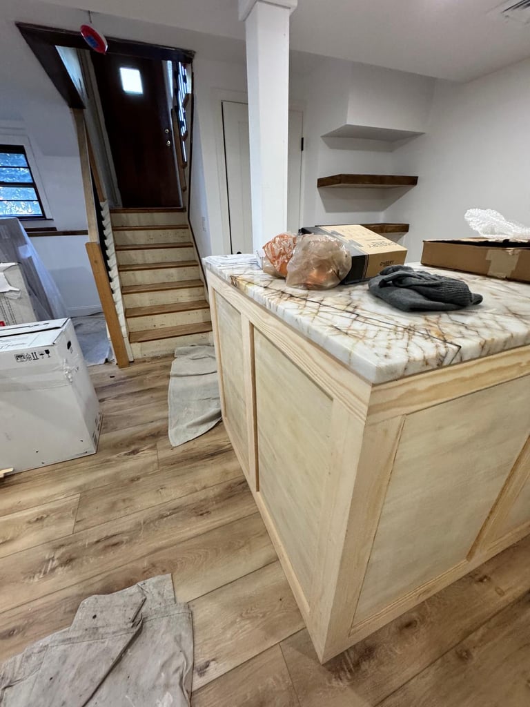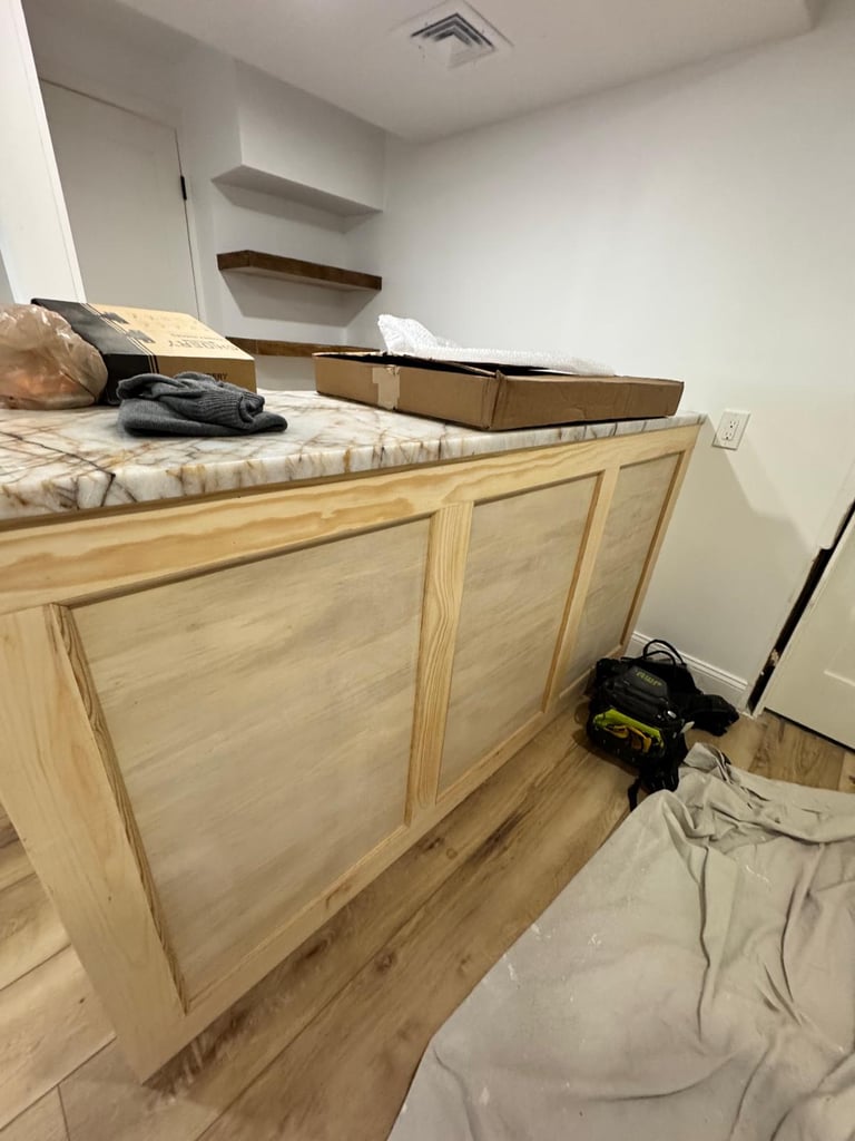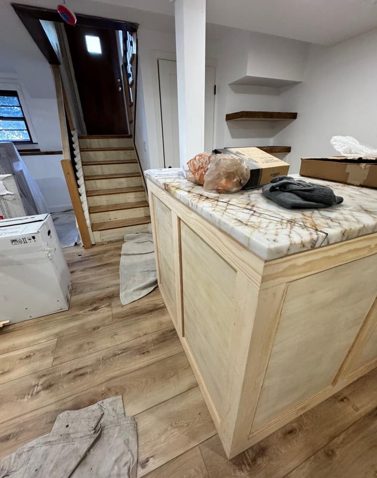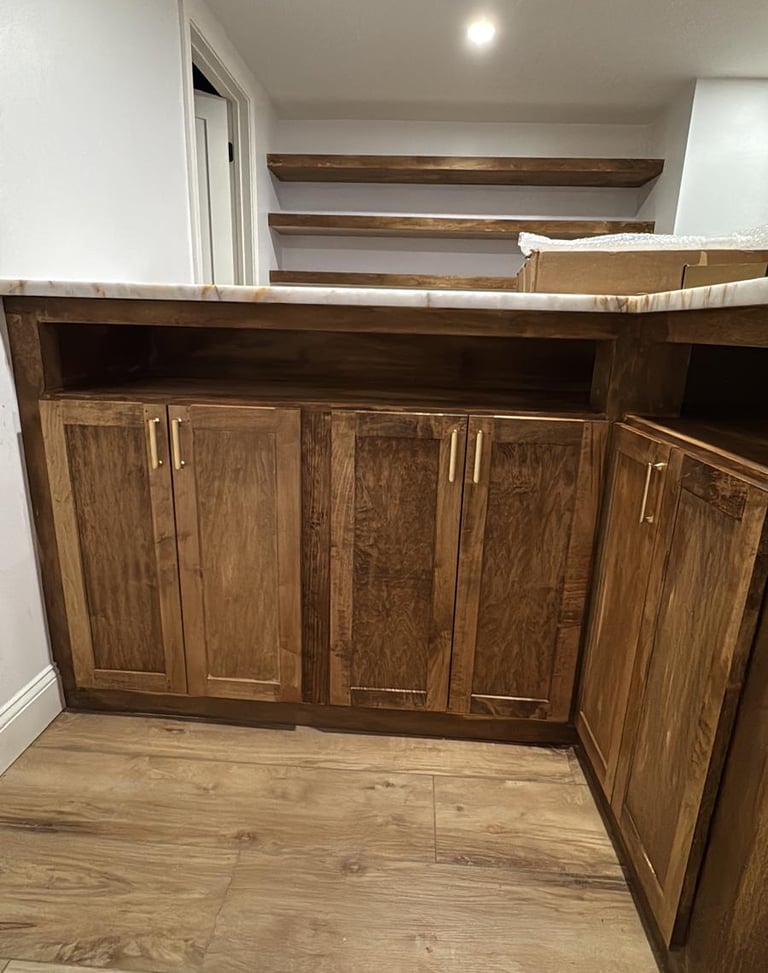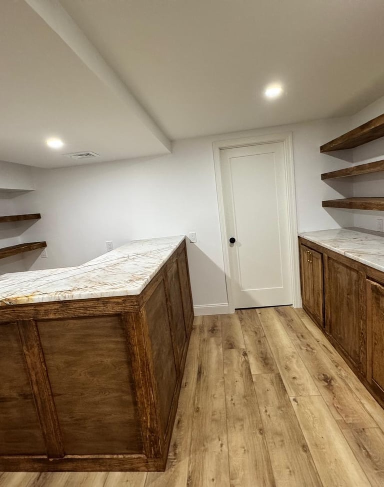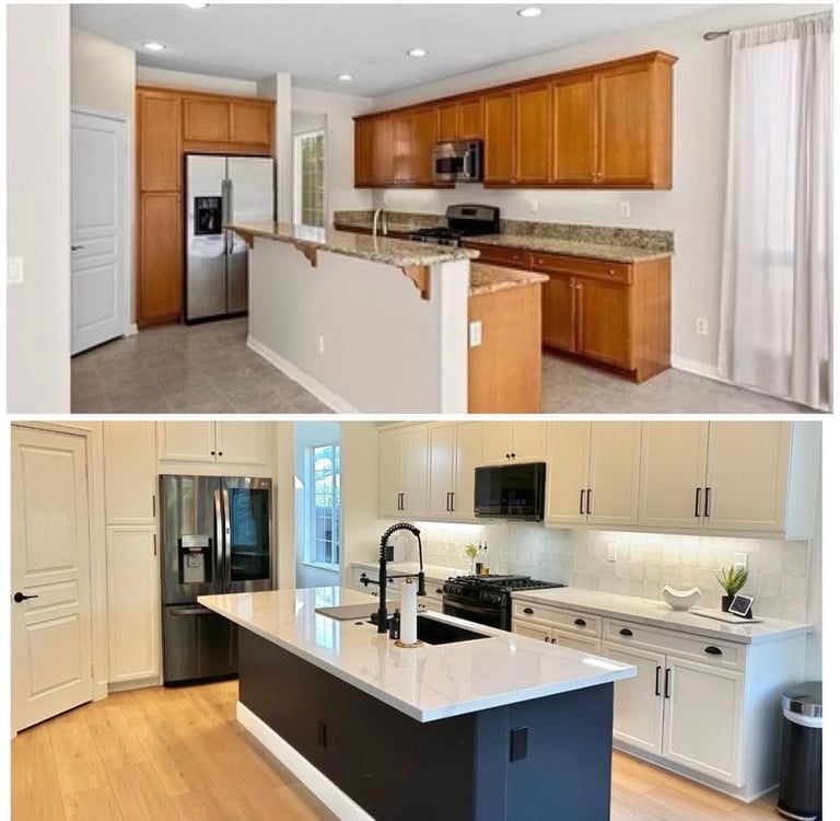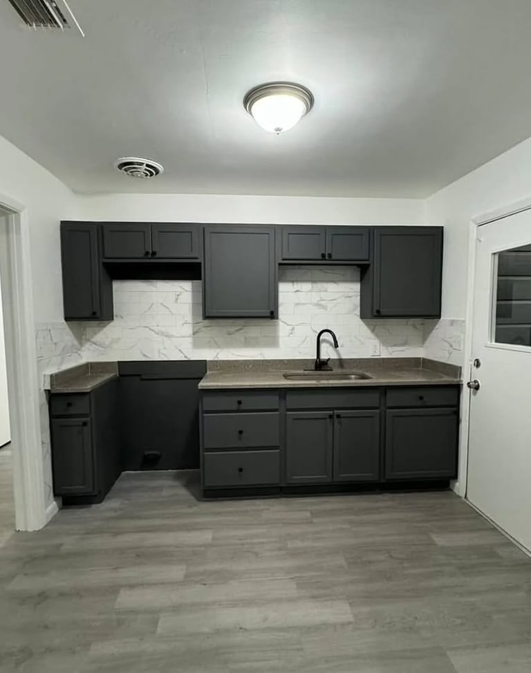 Professional cabinet painting with smooth finishes and durable coatings—revitalizing kitchens and bathrooms with a fresh, modern look at a fraction of the cost.